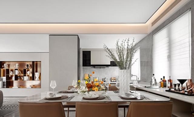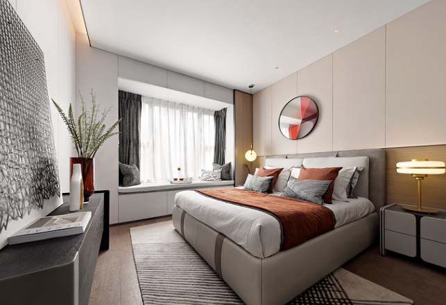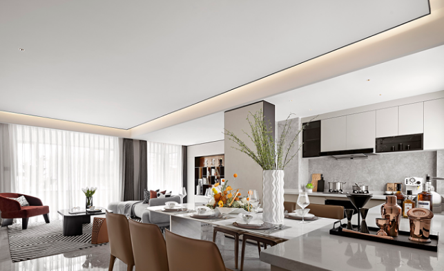 设计理念:既可在鸟语蝉鸣中感受东方独特韵味,又能感受到现代时尚的都市气息,高品质智能化社区名副其实。设计将现代人对时尚的追求与向往,通过现代艺术的主题融入至空间之中。简洁素雅的色调,利落的直线引导着空间充满生命的张力。